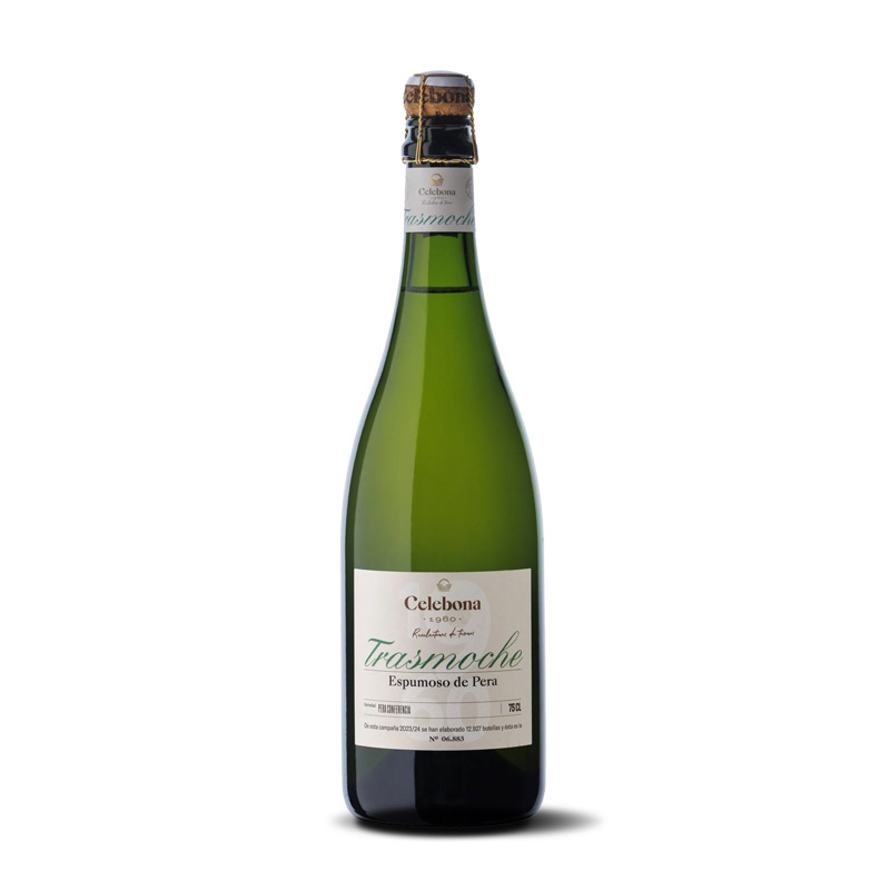 Trasmoche Espumoso de Pera de Celebona 1960 es un producto innovador y exclusivo de la empresa riojana Celebona 1960. No es un vino de uva, sino un espumoso elaborado íntegramente con peras de la variedad Conferencia seleccionadas de su propia finca en La Rioja. Destaca por su frescura vibrante, con una burbuja fina y persistente que realza la intensidad aromática de la pera fresca. En boca es equilibrado, con una textura cremosa aportada por el contacto con sus lías y un final refrescante y persistente.