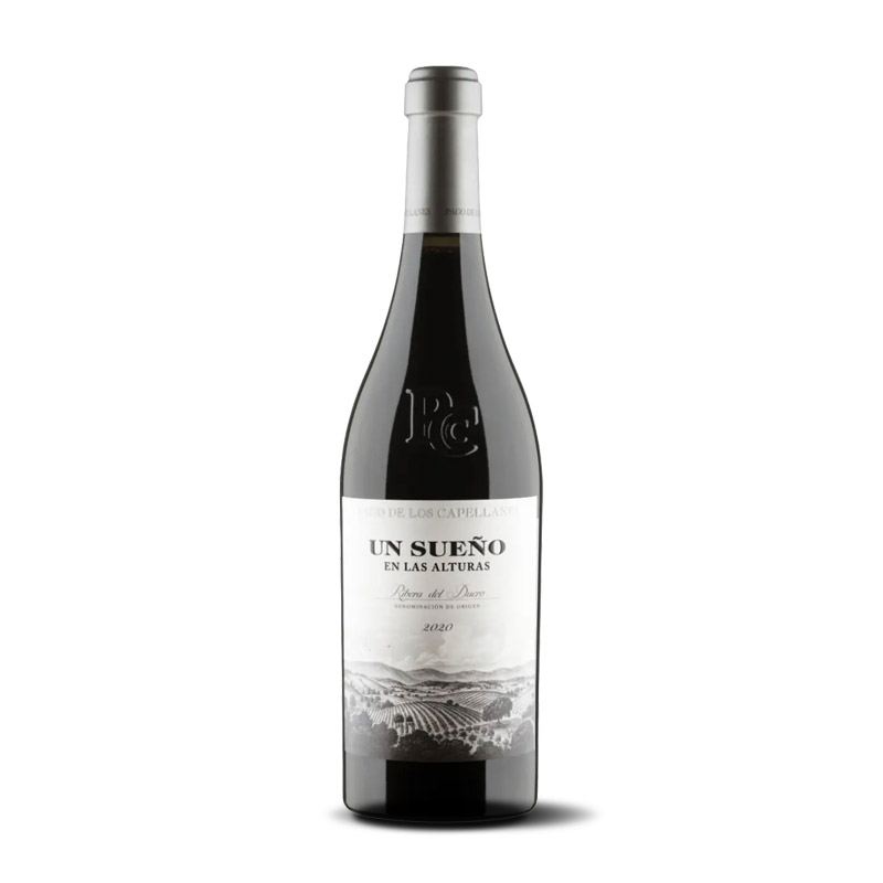 Un Sueño en las Alturas es un vino tinto excepcional y conmemorativo de Pago de los Capellanes, nacido del deseo de recuperar viñedos históricos en las zonas más altas y extremas de la Ribera del Duero (Fuentenebro, Pardilla y Honrubia). Es un vino que combina la potencia clásica de la región con una frescura y mineralidad verticales, ofreciendo aromas de frutos rojos silvestres, violetas y un sutil fondo de piedra caliza. En boca es vibrante, fluido y de una elegancia conmovedora.